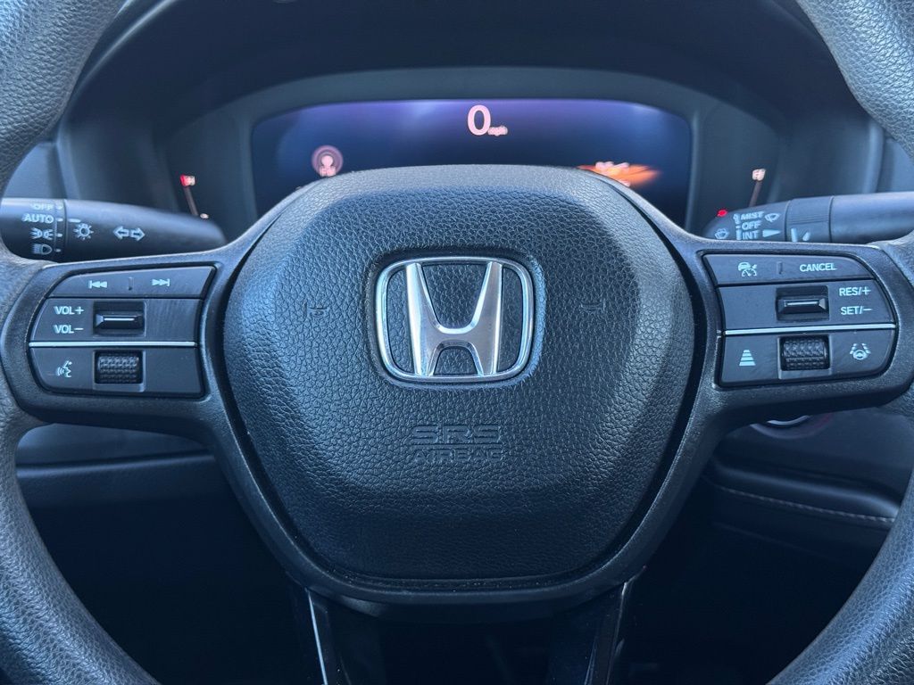 dlights, Driver door bin, Driver vanity mirror, Dual front impact airbags, Dual front side impact airbags, Electronic Stability Control, Emergency communication system: HondaLink Assist, Exterior Parking Camera Rear, Fabric Seat Trim, Four wheel independent suspension, Front anti-roll bar, Front Bucket Seats, Front Center Armrest, Front reading lights, Fully automatic headlights, Illuminated entry, Knee airbag, Lane departure: Lane Keeping Assist System (LKAS) active, Low tire pressure warning, Occupant sensing airbag, Outside temperature display, Overhead airbag, Overhead console, Panic alarm, Passenger door bin, Passenger vanity mirror, Power door mirrors, Power steering, Power windows, Radio data system, Radio: 160-Watt AM/FM Audio System, Rear anti-roll bar, Rear reading lights, Rear seat center armrest, Rear side impact airbag, Rear window defroster, Remote keyless entry, Security system, Speed control, Speed-sensing steering, Speed-Sensitive Wipers, Steering wheel mounted audio controls, Tachometer, Telescoping steering wheel, Tilt steering wheel, Traction control, Trip computer, Variably intermittent wipers, Wheels: 17" x 7.5" Blade Silver, REMOTE START, ADAPTIVE CRUISE, Black w/Fabric Seat Trim, Apple CarPlay/Android Auto.