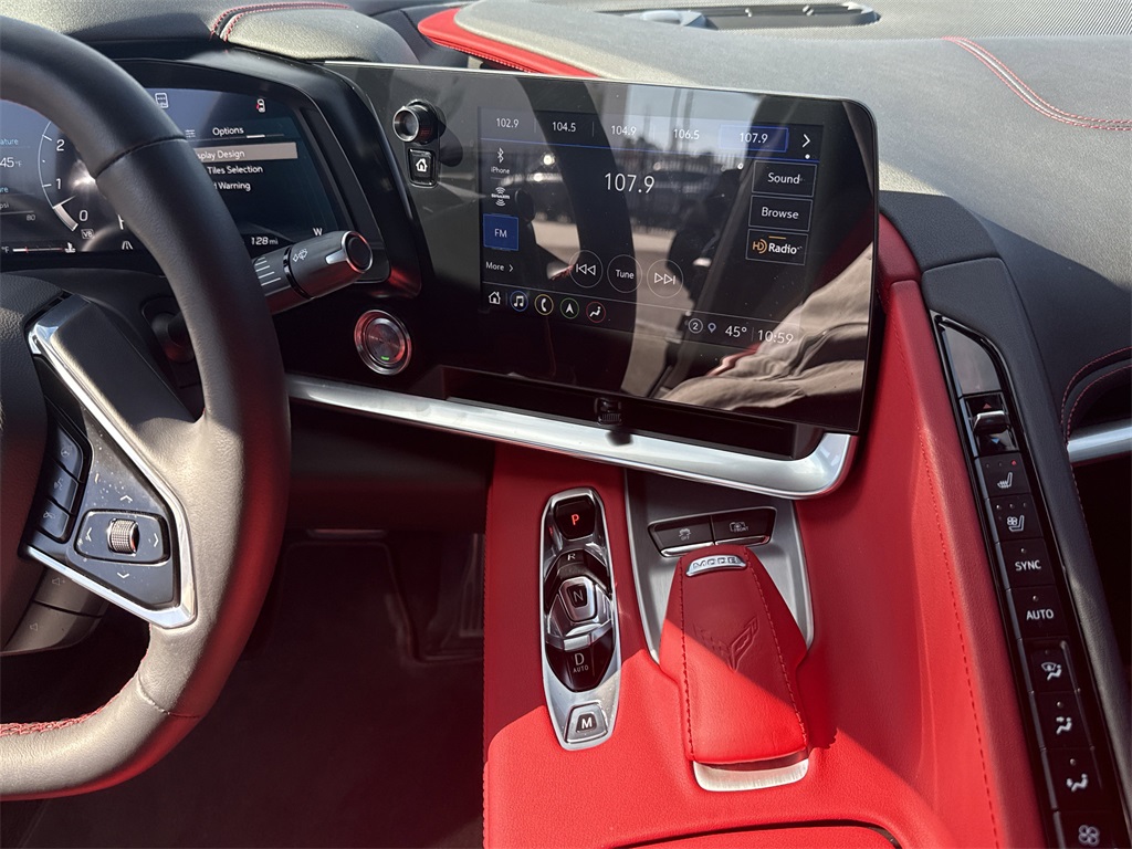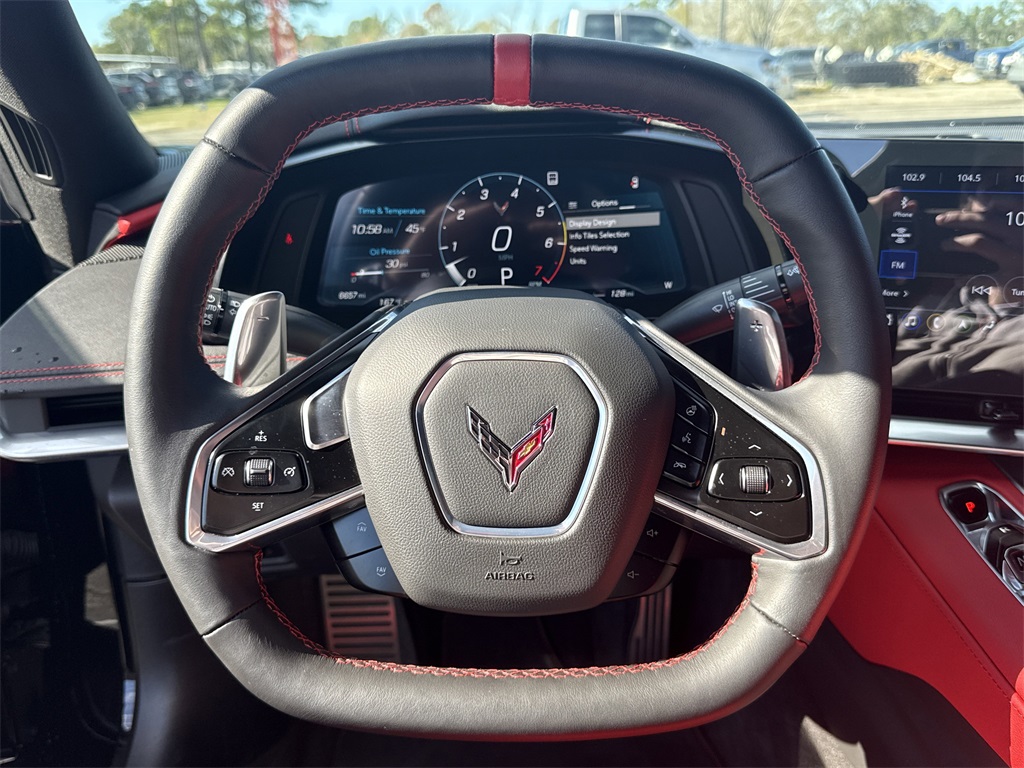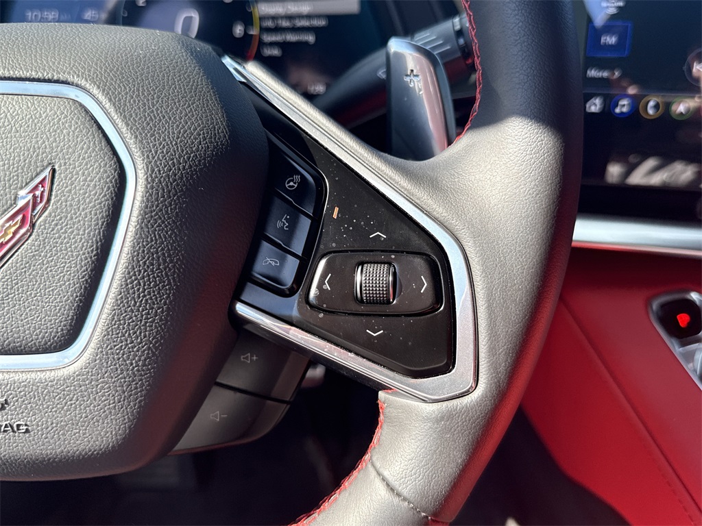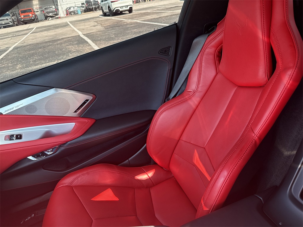 eated Steering Wheel, Passenger Power Bolster Seat Adjuster, Performance Data & Video Recorder, Power Driver Lumbar Control Seat Adjuster, Power Passenger Lumbar Control Seat Adjuster, Power-Adjustable Outside Heated Mirrors, Rear Cross Traffic Alert, Side Blind Zone Alert, Universal Home Remote, Vehicle Inclination Theft Deterrent Sensor, Vehicle Interior Movement Theft Deterrent Sensor, and Wireless Charging for Devices), Z51 Performance Package (Electronic Limited-Slip Differential, Heavy-Duty Cooling System, Performance Exhaust w/Stainless-Steel Tips, Performance Rear Axle Ratio, Rear Z51 Spoiler, Z51 Performance Brakes, and Z51 Performance Suspension), 14 Speakers, 4-Wheel Disc Brakes, 8-Way Power Driver Seat Adjuster, 8-Way Power Passenger Seat Adjuster, ABS brakes, Air Conditioning, Alloy wheels, AM/FM radio: SiriusXM, Apple CarPlay/Android Auto, Auto-dimming door mirrors, Auto-dimming Rear-View mirror, Automatic temperature control, Bose Performance Series Sound System w/14 Speakers, Brake assist, Bright Red-Painted Calipers, Bumpers: body-color, Compass, Convertible HardTop, Convertible roof lining, Delay-off headlights, Driver door bin, Driver vanity mirror, Dual front impact airbags, Dual front side impact airbags, Electronic Stability Control, Emergency communication system: OnStar and Chevrolet connected services capable, Four wheel independent suspension, Front anti-roll bar, Front Bucket Seats, Front Center Armrest, Front dual zone A/C, Front License Plate Bracket, Front reading lights, Fully automatic headlights, Garage door transmitter, Glass rear window, GT1 Bucket Seats, HD Radio, Heads-Up Display, Heated door mirrors, Heated front seats, Heated steering wheel, Illuminated entry, Integrated roll-over protection, Leather Shift Knob, Leather steering wheel, Low tire pressure warning, Memory seat, Mulan Lthr Seating Surfaces w/Perforated Inserts, Navigation System, Occupant sensing airbag, Outside temperature display, Overhead console, Panic alarm, Passenger door bin, Passenger vanity mirror, Power convertible roof, Power door mirrors, Power driver seat, Power passenger seat, Power steering, Power windows, Premium audio system: Chevrolet Infotainment 3 Premium, Radio data system, Radio: Chevrolet Infotainment 3 Premium System, Rear anti-roll bar, Rear window defroster, Remote keyless entry, Security system, SiriusXM Radio, Speed control, Speed-sensing steering, Sport steering wheel, Steering wheel memory, Steering wheel mounted audio controls, Tachometer, Telescoping steering wheel, Tilt steering wheel, Traction control, Trip computer, Turn signal indicator mirrors, Variably intermittent wipers, Ventilated front seats, Voltmeter, Wheels: 19" x 8.5" Fr/20" x 11" Rr Bright Silver, and Wheels: 19" x 8.5" Fr/20" x 11" Rr Spectra Gray.