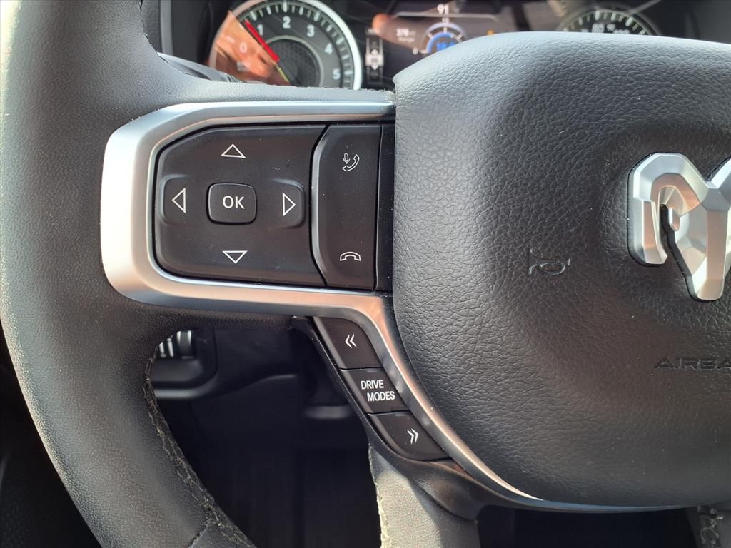 ubwoofer, Air Conditioning ATC w/Dual Zone Control, Apple CarPlay, Auto Power-Folding Mirrors, Auto-Dimming Exterior Driver Mirror, Auto-Dimming Rear-View Mirror, Big Horn Level 2 Equipment Group, Black Exterior Mirrors, Black Interior Accents, Black Premium Power Mirrors, Body Color Door Handles, Body Color Front Bumper, Body Color Rear Bumper w/Step Pads, Body Color Tailgate Handle, Bucket Seats, Cluster 7.0" TFT Color Display, Configurable Drive Mode, Connected Travel & Traffic Services, Connectivity - US/Canada, Convex Wide-Angle Exterior Mirror Insert, Deluxe Cloth Bucket Seats, Exterior Mirrors Courtesy Lamps, Exterior Mirrors w/Heating Element, Exterior Mirrors w/Supplemental Signals, Front Seat Back Map Pockets, Full Length Floor Console, Glove Box Lamp, Google Android Auto, GPS Antenna Input, GPS Navigation, Grille Surround 1 Body Color Texture 1 Black, HD Radio, Heated Front Seats, Heated Steering Wheel, Integrated Voice Command w/Bluetooth, Leather Wrapped Steering Wheel, LED Dome Lamp w/On/Off Switch, LED Footwell Lighting, Lone Star Badge, Manual Adjust 4-Way Front Passenger Seat, Media Hub w/2 Charge Only USBs, Overhead LED Lamps, Power 2-Way Driver Lumbar Adjust, Power Adjust 8-Way Driver Seat, Power Adjustable Pedals, Premium Overhead Console, Quick Order Package 21R Lone Star (Regional), Radio: Uconnect 5 Nav w/12.0" Display, RAM Grille Badge - Chrome, Rear 60/40 Folding Seat, Rear Center Armrest, Rear Power Sliding Window, Rear Window Defroster, Remote Tailgate Release, Security Alarm, SiriusXM w/360L, Sport Appearance Package, Steering Wheel Mounted Audio Controls, Sun Visors w/Illuminated Vanity Mirrors, Universal Garage Door Opener, USB Host Flip. Odometer is 6365 miles below market average!