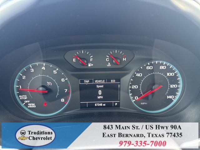 -off headlights, Driver door bin, Driver vanity mirror, Dual front impact airbags, Dual front side impact airbags, Electronic Stability Control, Emergency communication system: OnStar and Chevrolet connected services capable, Exterior Parking Camera Rear, Four wheel independent suspension, Front anti-roll bar, Front Bucket Seats, Front Center Armrest, Front dual zone A/C, Front reading lights, Fully automatic headlights, Heated door mirrors, Heated Driver & Front Passenger Seats, Heated front seats, Illuminated entry, Knee airbag, Low tire pressure warning, Occupant sensing airbag, Outside temperature display, Overhead airbag, Overhead console, Panic alarm, Passenger door bin, Passenger vanity mirror, Power door mirrors, Power Driver Lumbar Control Seat Adjuster, Power driver seat, Power steering, Power windows, Premium audio system: Chevrolet Infotainment 3 Plus, Premium Cloth Seat Trim, Radio data system, Radio: Chevrolet Infotainment 3 System, Rear anti-roll bar, Rear reading lights, Rear seat center armrest, Rear side impact airbag, Rear window defroster, Remote keyless entry, Security system, SiriusXM Radio, Speed control, Split folding rear seat, Steering wheel mounted audio controls, Tachometer, Telescoping steering wheel, Tilt steering wheel, Traction control, Trip computer, Variably intermittent wipers, Voltmeter, and Wireless Apple CarPlay/Android Auto.
