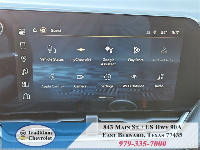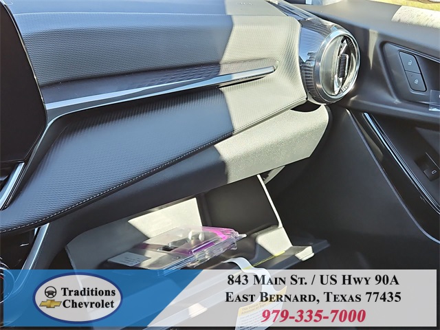 dent suspension, Front anti-roll bar, Front Bucket Seats, Front Center Armrest, Front Passenger 4-Way Manual Seat Adjuster, Front reading lights, Fully automatic headlights, Heated door mirrors, Heated Driver & Front Passenger Seats, Heated front seats, Heated steering wheel, Illuminated entry, Low tire pressure warning, Navigation System, Occupant sensing airbag, Outside temperature display, Overhead airbag, Overhead console, Panic alarm, Passenger door bin, Passenger vanity mirror, Power door mirrors, Power steering, Power windows, Premium audio system: Chevrolet Infotainment 3, Radio data system, Radio: 11.3" Diagonal Advanced Color LCD Display, Rear anti-roll bar, Rear reading lights, Rear seat center armrest, Rear window defroster, Rear window wiper, Remote keyless entry, Security system, SiriusXM w/360L Trial Subscription, Speed control, Speed-sensing steering, Split folding rear seat, Spoiler, Steering wheel mounted audio controls, Tachometer, Telescoping steering wheel, Tilt steering wheel, Traction control, Trip computer, Variably intermittent wipers, and Wheels: 17" Grazen Metallic Machined-Face Aluminum.