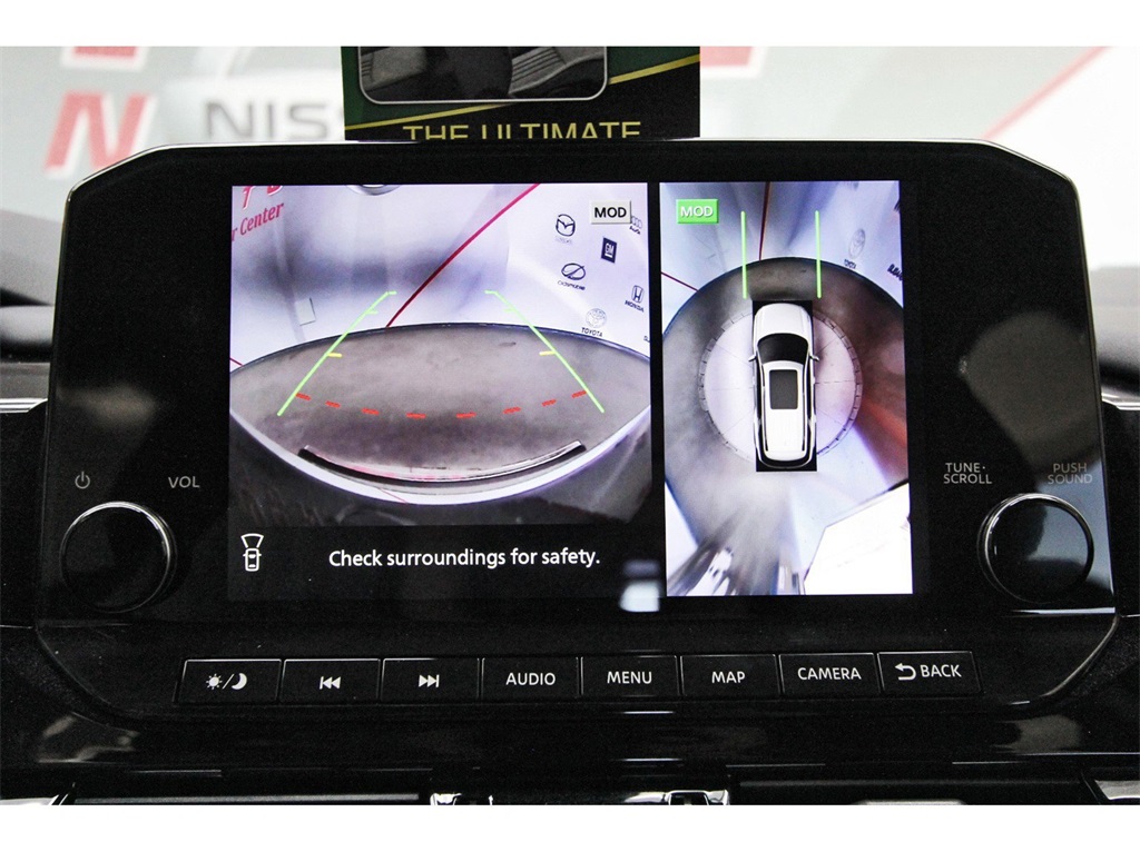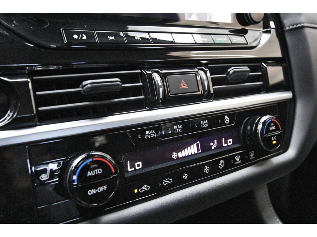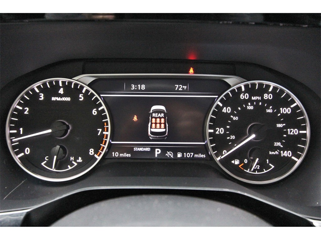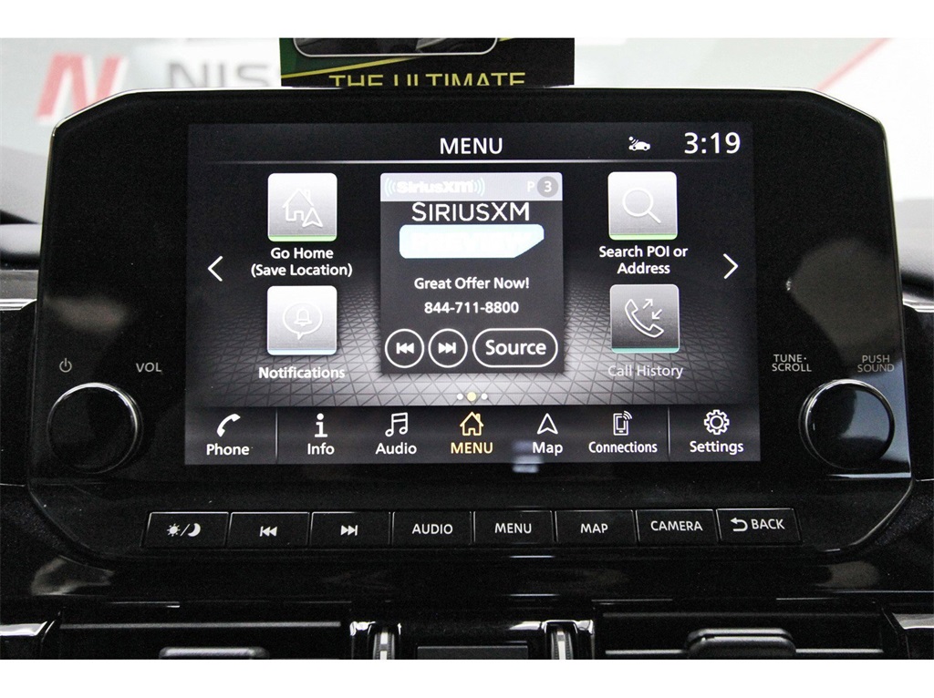 in, Driver vanity mirror, Dual front impact airbags, Dual front side impact airbags, Electronic Stability Control, Emergency communication system, Exterior Parking Camera Rear, Four wheel independent suspension, Front anti-roll bar, Front Bucket Seats, Front Center Armrest, Front dual zone A/C, Front reading lights, Fully automatic headlights, Garage door transmitter: HomeLink, Heated door mirrors, Heated Front Bucket Seats, Heated front seats, Heated steering wheel, Illuminated entry, Knee airbag, Leather steering wheel, Leather-Appointed Seating Surfaces, Low tire pressure warning, Navigation system: NissanConnect with Navigation and Services, NissanConnect featuring Apple CarPlay and Android Auto, NissanConnect w/Navigation & Services, Occupant sensing airbag, Outside temperature display, Overhead airbag, Overhead console, Panic alarm, Passenger door bin, Passenger vanity mirror, Power door mirrors, Power driver seat, Power Liftgate, Power passenger seat, Power steering, Power windows, Radio data system, Radio: AM/FM Audio System, Rear air conditioning, Rear anti-roll bar, Rear reading lights, Rear seat center armrest, Rear side impact airbag, Rear window defroster, Rear window wiper, Reclining 3rd row seat, Remote keyless entry, Security system, Speed control, Speed-sensing steering, Split folding rear seat, Spoiler, Steering wheel mounted audio controls, Tachometer, Telescoping steering wheel, Tilt steering wheel, Traction control, Trip computer, Turn signal indicator mirrors, Variably intermittent wipers, and Wheels: 18" x 8J Machined Alloy!!