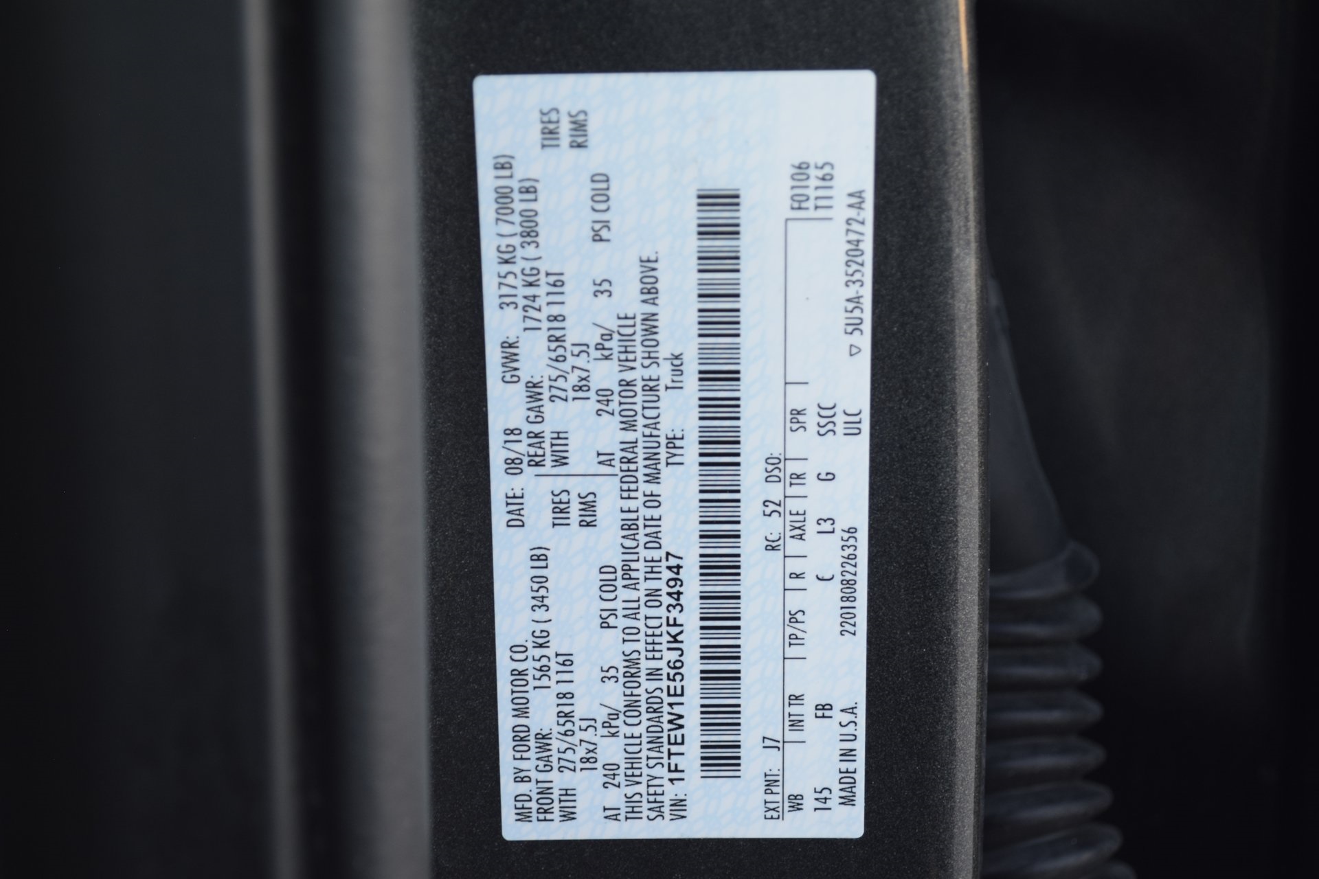 1FTEW1E56JKF34947Stock #