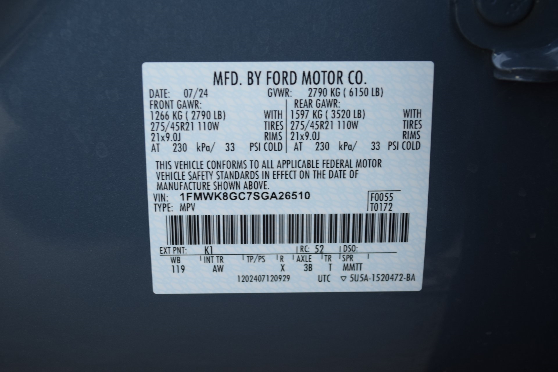 1FMWK8GC7SGA26510Stock #