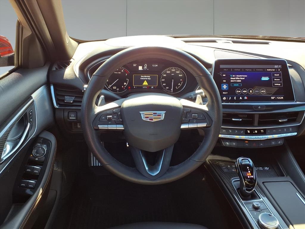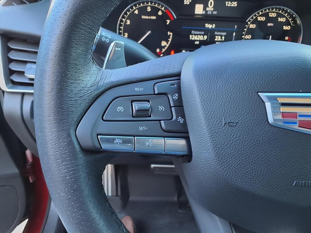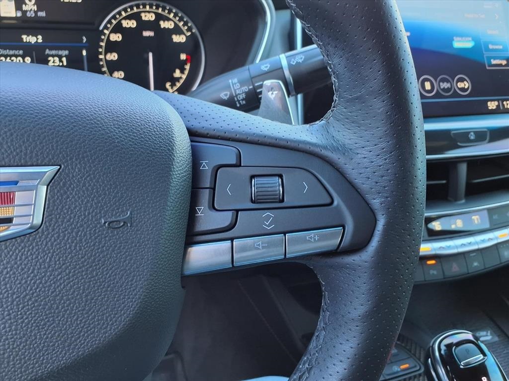 (All-Weather Cargo Mat (LPO) and All-Weather Floor Mats), Navigation & Bose Premium Audio Package, Preferred Equipment Group 1SE (4-Wheel Antilock 4-Wheel Disc Brakes, Body-Color Heated Pwr-Adjustable Outside Mirrors, Dual Diagonal Color Driver Information Center, Front & Rear Park Assist, HD Rear Vision Camera, Inside Rear-View Auto-Dimming Mirror, Lane Keep Assist w/Lane Departure Warning, LED Reflective Windshield Alert, and Ride & Handling Suspension), Radio: Cadillac User Experience w/Embedded Nav (Bose Performance Series Premium 15-Speaker System and SiriusXM w/360L), Cadillac Certified Pre-Owned Certified, 3 USB Ports, 4-Wheel Disc Brakes, 9 Speakers, ABS brakes, Air Conditioning, Alloy wheels, AM/FM radio: SiriusXM with 360L, Apple CarPlay/Android Auto, Auto High-beam Headlights, Auto-dimming door mirrors, Auto-dimming Rear-View mirror, Automatic Stop/Start w/Disable, Automatic temperature control, Blue Brembo Calipers, Brake assist, Brembo V Performance Front Brakes (Blue), Bumpers: body-color, Compass, Delay-off headlights, Driver 4-Way Power Lumbar Seat Adjuster, Driver door bin, Driver vanity mirror, Dual front impact airbags, Dual front side impact airbags, Electronic Stability Control, Emergency communication system: OnStar and Cadillac connected services capable, Exterior Parking Camera Rear, Four wheel independent suspension, Front anti-roll bar, Front Bucket Seats, Front Center Armrest, Front dual zone A/C, Front License Plate Bracket, Front Passenger 4-Way Power Lumbar Seat Adjuster, Front Passenger 8-Way Power Seat Adjuster, Front reading lights, Fully automatic headlights, Garage door transmitter, HD Radio, Heated door mirrors, Illuminated entry, Inteluxe Seating Surfaces, Knee airbag, Leather steering wheel, Low tire pressure warning, Memory seat, Occupant sensing airbag, Outside temperature display, Overhead airbag, Overhead console, Panic alarm, Passenger door bin, Passenger vanity mirror, Power door mirrors, Power driver seat, Power passenger seat, Power steering, Power windows, Premium 9-Speaker Audio System Feature, Radio data system, Radio: Cadillac User Experience, Rain sensing wipers, Rear anti-roll bar, Rear reading lights, Rear seat center armrest, Rear window defroster, Red Brembo Calipers, Remote keyless entry, Speed control, Speed-sensing steering, Split folding rear seat, Spoiler, Steering wheel memory, Steering wheel mounted audio controls, Tachometer, Teen Driver, Telescoping steering wheel, Tilt steering wheel, Traction control, Trip computer, Turn signal indicator mirrors, UltraView Dual Pane Sunroof, Variably intermittent wipers, Voltmeter, Wheels: 19" Alloy w/Pearl Nickel Finish, and Wheels: 19" Alloy w/Satin Graphite Finish. Recent Arrival! Odometer is 5995 miles below market average! 23/33 City/Highway MPG