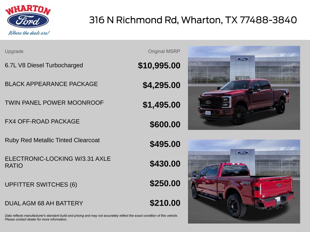 Ruby Red Metallic 2026 Ford F-250SD Lariat 4WD 10-Speed Automatic Power Stroke 6.7L V8 DI 32V OHV Turbodiesel 4WD.