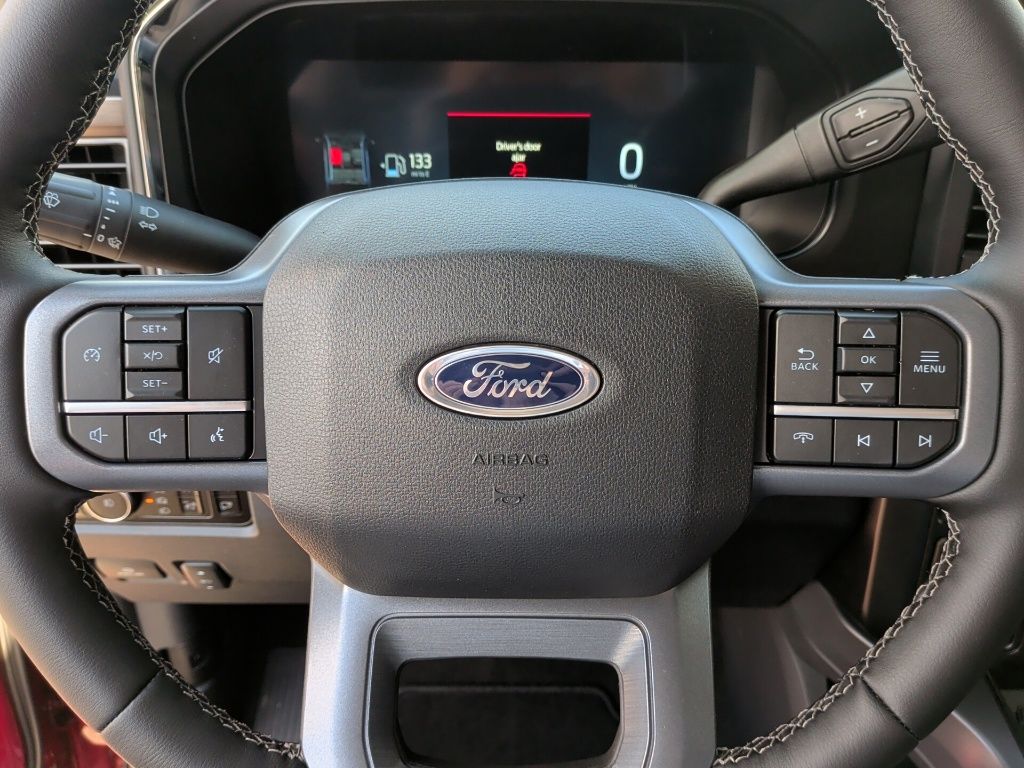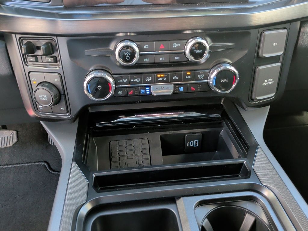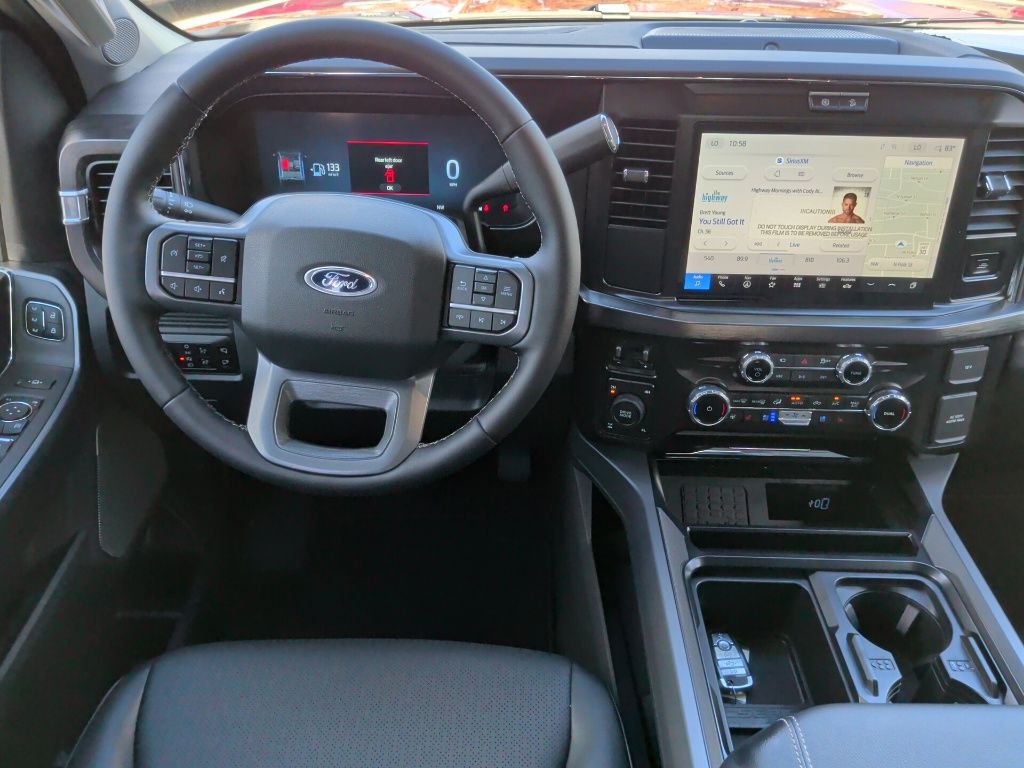 Off-Road Package (Hill Descent Control, Off-Road Specifically Tuned Shock Absorbers, and Unique FX4 Off-Road Box Decal), Internet access capable: 5G Modem - Ford Connectivity Package, Order Code 608A, 4WD, 4-Wheel Disc Brakes, 8 Speakers, ABS brakes, Adjustable pedals, Air Conditioning, Alloy wheels, AM/FM radio: SiriusXM with 360L, Auto High-beam Headlights, Auto-dimming Rear-View mirror, Automatic temperature control, BLIS w/Cross-Traffic Alert, Brake assist, Bumpers: chrome, Compass, Delay-off headlights, Driver door bin, Driver vanity mirror, Dual AGM 68 AH Battery, Dual front impact airbags, Dual front side impact airbags, Electronic Stability Control, Emergency communication system: SYNC 4 911 Assist, Flow-Through Console, Front ActiveX Trimmed 40/Console/40 Seats, Front anti-roll bar, Front Bucket Seats, Front Center Armrest, Front dual zone A/C, Front fog lights, Front License Plate Bracket, Front reading lights, Fully automatic headlights, Garage door transmitter, Heated door mirrors, Heated front seats, Heated rear seats, Heated steering wheel, Illuminated entry, Low tire pressure warning, Memory seat, Navigation system: Connected Navigation, Outside temperature display, Overhead airbag, Overhead console, Panic alarm, Passenger door bin, Passenger vanity mirror, Pedal memory, Power door mirrors, Power driver seat, Power passenger seat, Power steering, Power windows, Privacy Glass, Radio: B&O Sound System by Bang & Olufsen, Rain sensing wipers, Rear Parking Sensors, Rear reading lights, Rear seat center armrest, Rear step bumper, Rear window defroster, Remote keyless entry, Security system, SiriusXM w/360L, Speed control, Split folding rear seat, Steering wheel mounted audio controls, SYNC 4 w/Enhanced Voice Recognition, Tachometer, Telescoping steering wheel, Tilt steering wheel, Traction control, Trip computer, Turn signal indicator mirrors, Twin Panel Power Moonroof, Upfitter Switches (6), Variably intermittent wipers, Ventilated front seats, and Wheels: 18" Bright Machined & Carbonized Gray Alum.